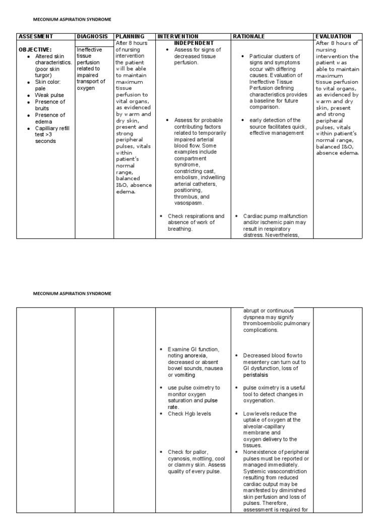 Nursing Care Plan For Meconium Aspiration Syndrome