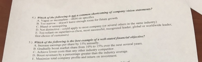 Which of the following is the best example of a well-stated financial objective. A superior example of a well-stated strategic objective is to. Overtake key competitors on product quality within three years.