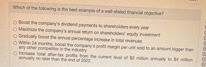 Which Of The Following Is The Best Example Of A Well-stated Financial Objective