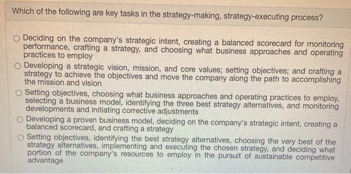 See full answer below. A company exhibits strategic intent when. Which of the following is the best example of a well-stated strategic objective.